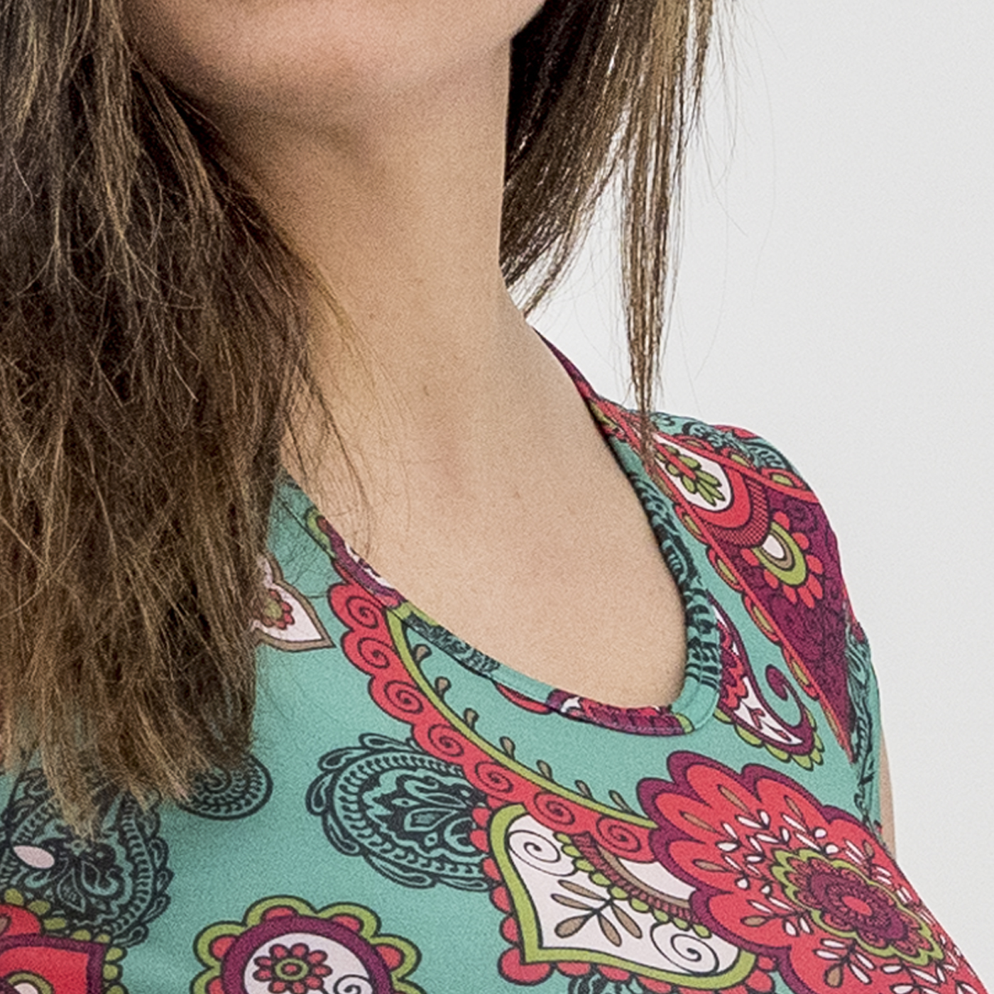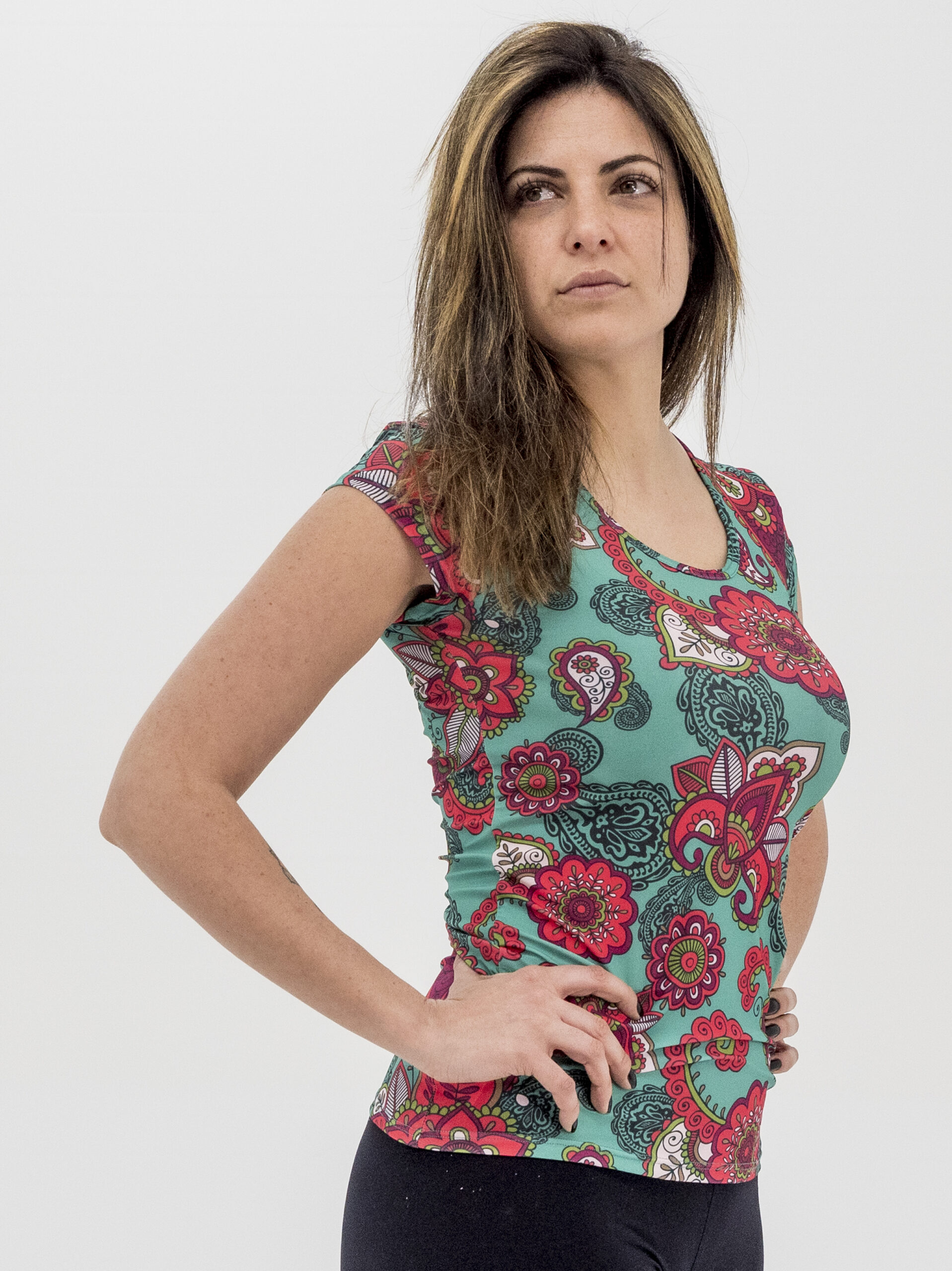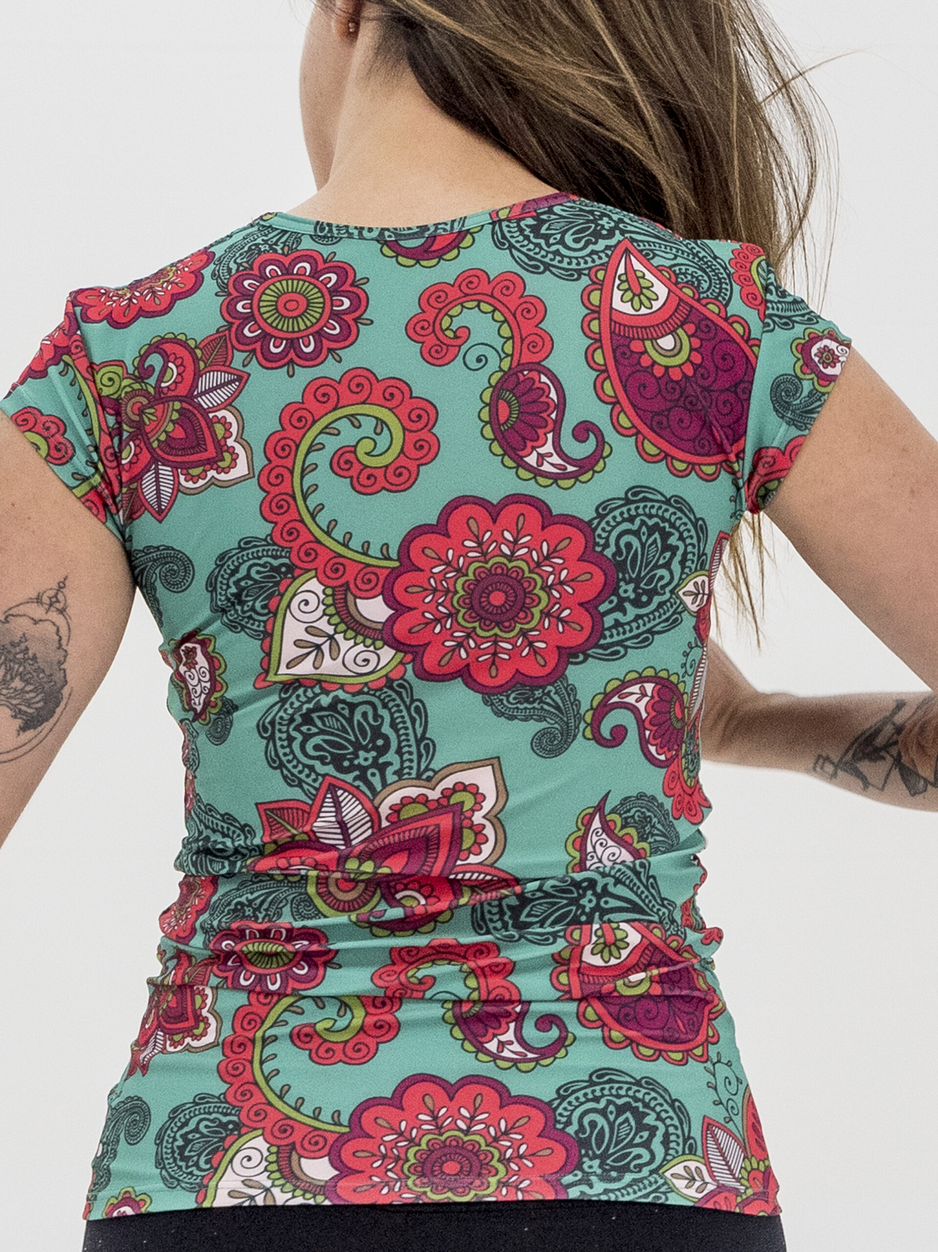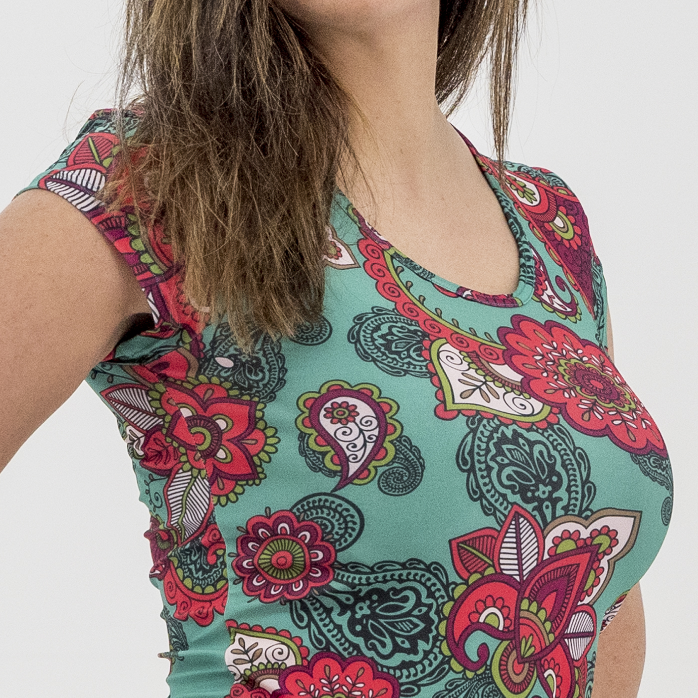 Camiseta ajustada a cuerpo, cuello redondo, manga corta. estampado Cachemire