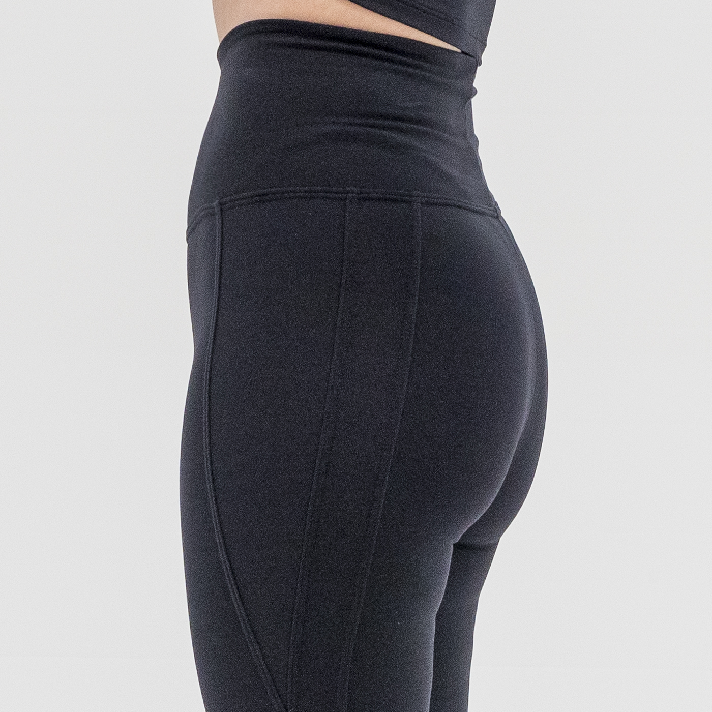 Pantalón leggins negro reforzado en zona vientre, costuras laterales.